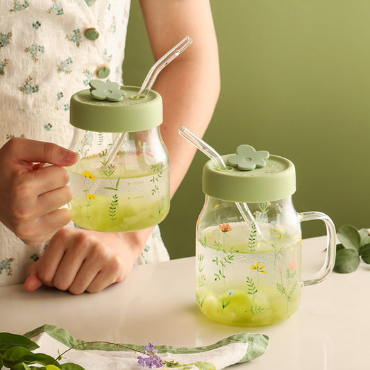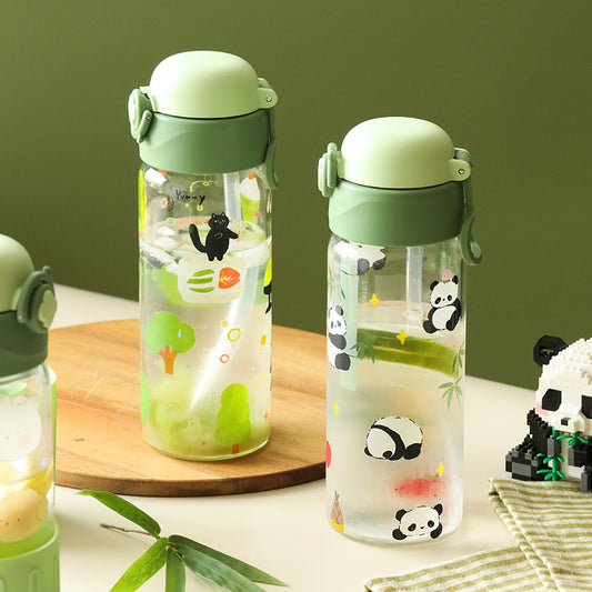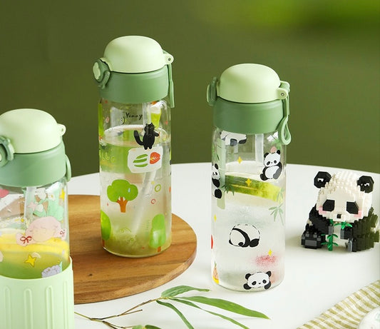 Crystal Panda Glass Bottle with Straw