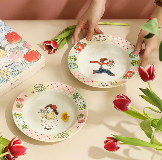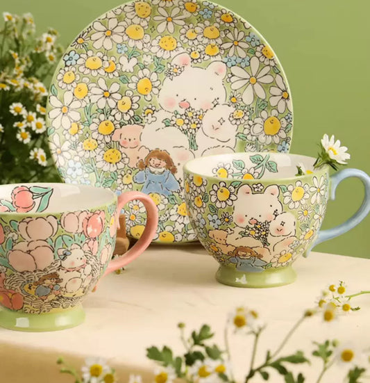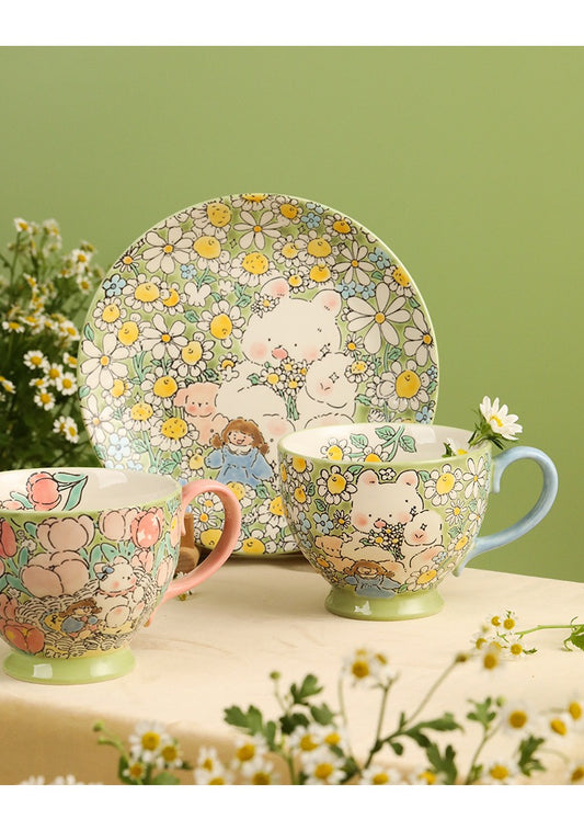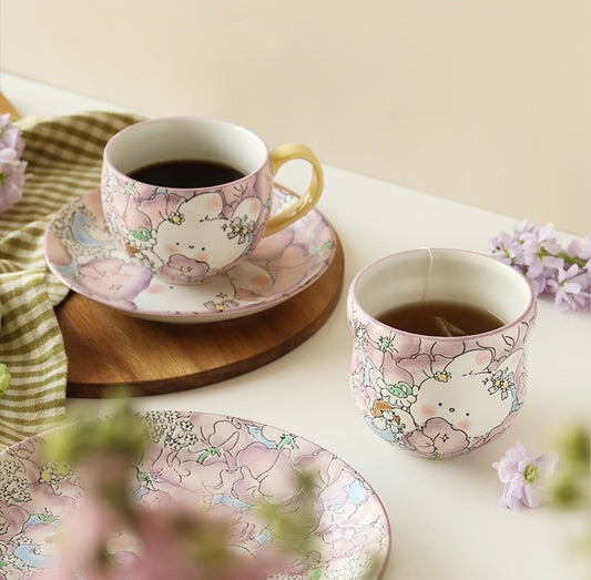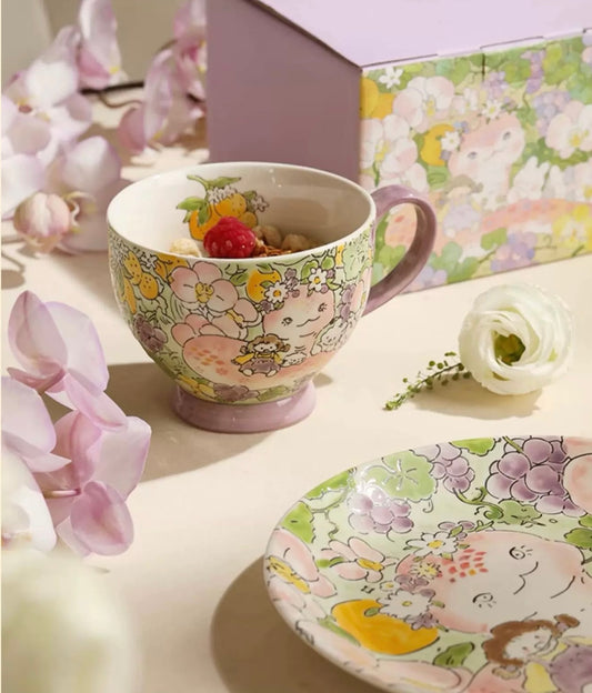 Every piece of tableware tells the tale of panda, who finds joy in playing in the hydrangea garden and the strawberry cake world.