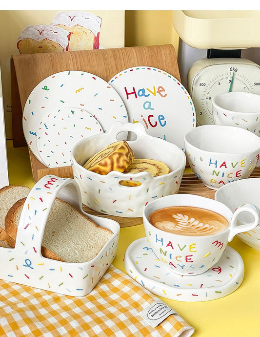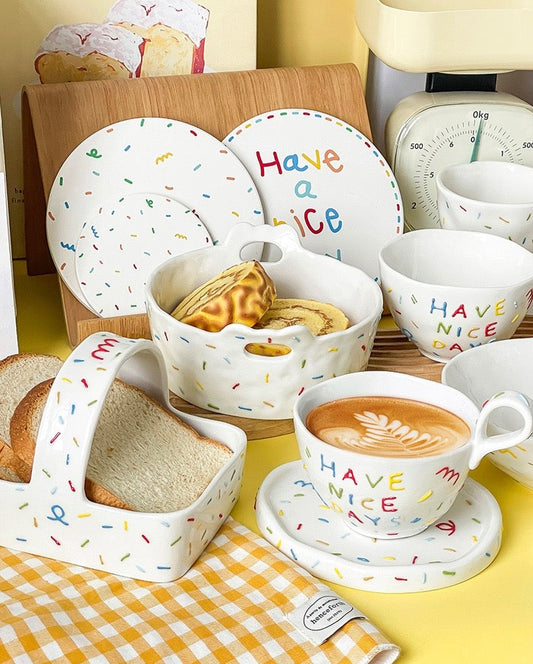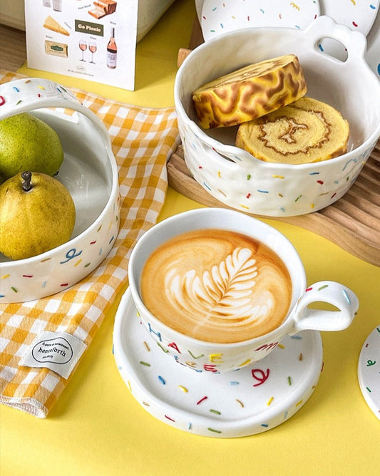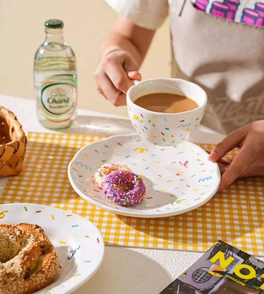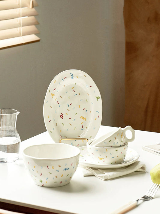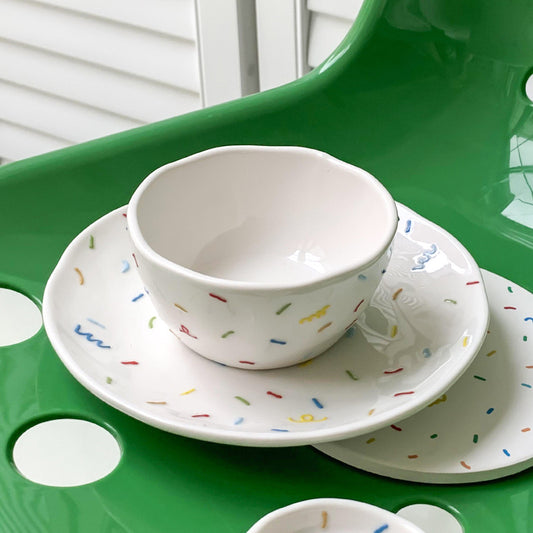 Welcome to the enchanting world of the "Vie Colorée" collection, where every meal becomes a celebration of color and texture. Inspired by the vibrant spirit of French tableware, this exquisite range features bowls, cups, plates, small dishes, and tableware mats, adorned with delightful sprinkles and a unique bumpy texture. Each piece in the "Vie Colorée" collection is crafted to bring joy and a touch of whimsy to your dining experience, blending traditional French elegance with a playful, modern twist. Discover the magic of "Vie Colorée" and let your table tell a story of color and charm.