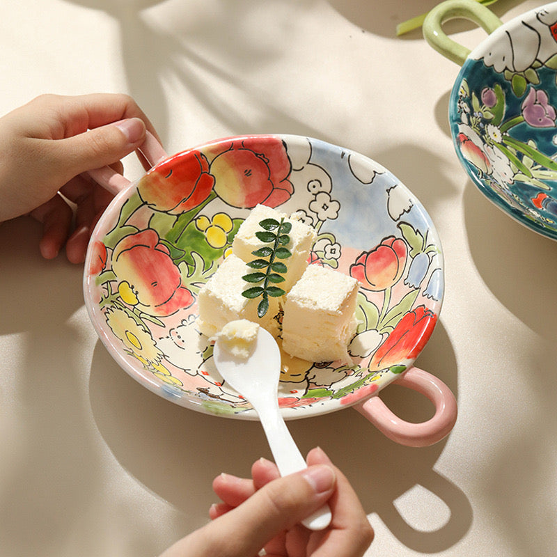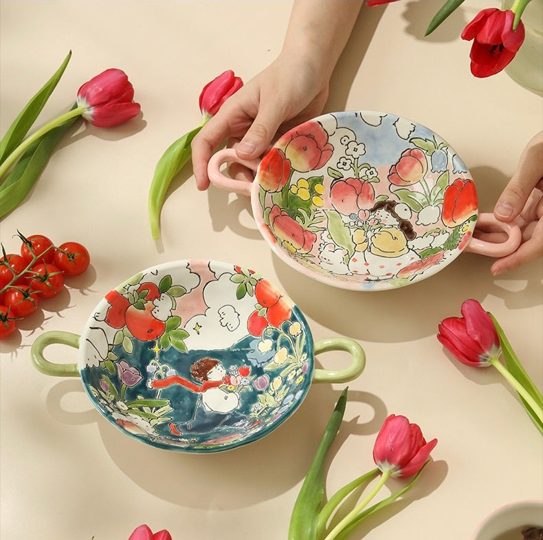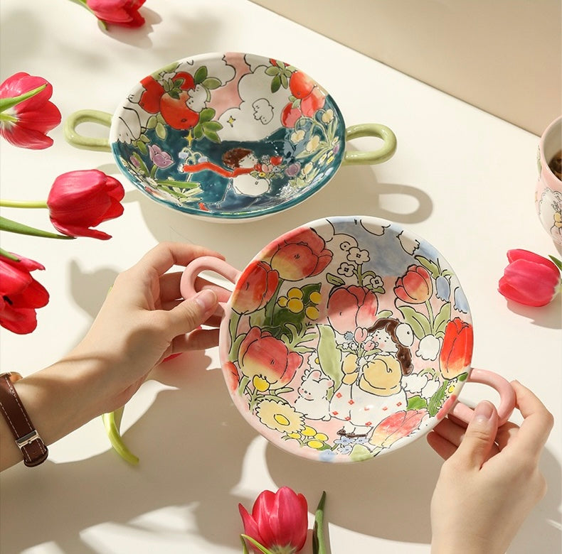 Introducing the 'Girl's Floral Binaural Dish' – illustrated a little girl who play in a fairy tale world. We hope everyone sees the beauty in their eyes as well.
