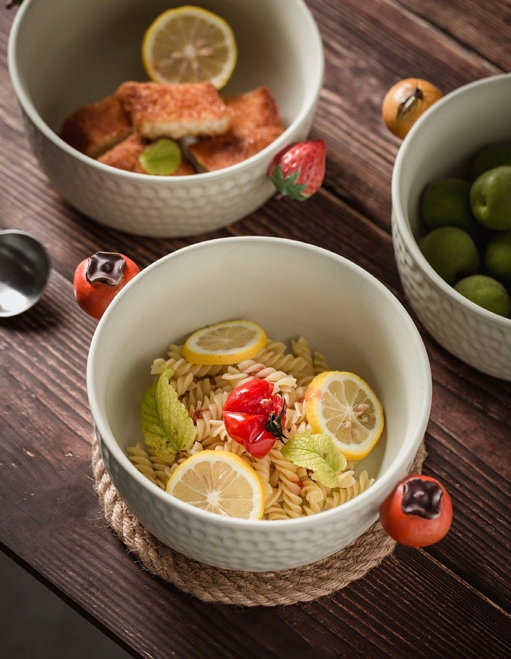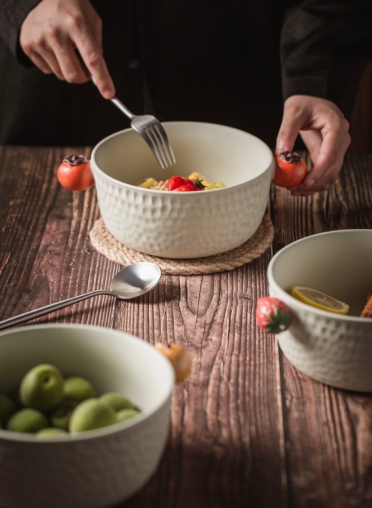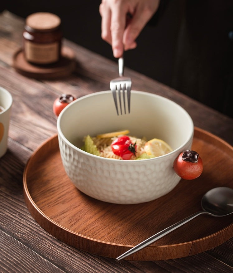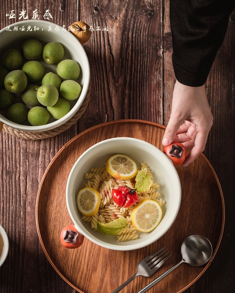 This delightful bowl features two adorable persimmon-shaped handles, adding a playful touch to its design. Perfect for serving your favorite fruits, snacks, desserts, salad, soup, and noodles. it’s crafted from high-quality ceramic to ensure durability and long-lasting beauty. Bring a bit of nature’s sweetness to your table with the Bountiful Harvest Persimmon Bowl, combining functionality with whimsical charm.